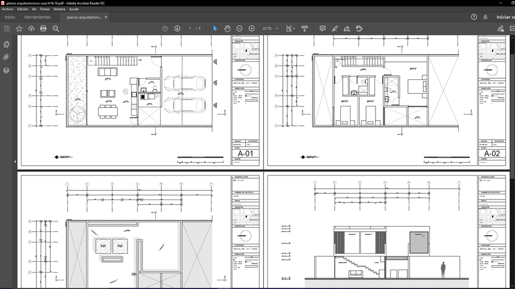 Planos Arquitectónicos (planta baja, primer planta, segunda planta, planta de azotea, cortes A-A" y B-B" y Fachadas)